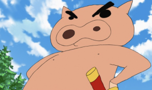 しんのすけが直接描いた豚キャラで自称「ヒーロー」というぶりぶりざえもん。シロと一緒に「クレヨンしんちゃん」のマスコットの役目を果たしている。