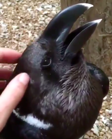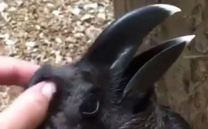 画像の中で黒い毛に全身を覆われた生き物は、一見すると2つの長い耳を持つ、みなさんおなじみの「ウサギ」のようにみます。画像に写り込んでいる動物をゆっくりなでている人間の手は、可愛らしいうさぎの顔をなでているように見えます。しかし、この動画のつづきをみると衝撃の事実が発覚します。