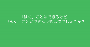 ”「ぬぐ」ことができない物は何でしょうか?” 頭の回転が速い人には10秒で解けるクイズ問題 今回ご紹介するのは脳トレクイズです。 問題 「はく」ことはできるけど、「ぬぐ」ことができない物は何でしょうか? Google ADVERTISEMENT Google あなたはわかりましたか? それでは答え合わせに行きましょう! Google 答えは、、、「ほうき」 ADVERTISEMENT 掃除道具の「ほうき」は、掃はくことは出来ますが、脱ぐことはできません。 Google あなたは間違えずに解けたでしょうか! ADVERTISEMENT Google [著作権者VONVON /無断コピー、無断転載および再配布禁止(違反時の法的措置)