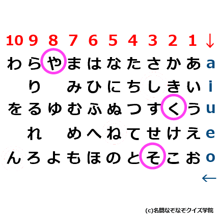 「数字」はあいうえお表の「横列」を、「アルファベット」はあいうえお表の「縦列」を表していました。