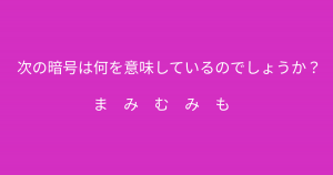「次の暗号は何を意味しているのでしょうか?」 文字をよーくみてみるとわかってくるかも!? 今回ご紹介するのは脳トレクイズです。 問題 : 次の暗号は何を意味しているのでしょうか? ま み む み も Google ADVERTISEMENT Google あなたはわかりましたか? それでは答え合わせに行きましょう! Google 答えは、、、「女神」 ADVERTISEMENT 正しくは「まみむめも」ですが、問題文では「め」が「み」になっています。めがみだけに「女神」が暗号の答えになります。 ADVERTISEMENT Google あなたは間違えずに解けたでしょうか! Google [著作権者VONVON /無断コピー、無断転載および再配布禁止(違反時の法的措置) ADVERTISEMENT
