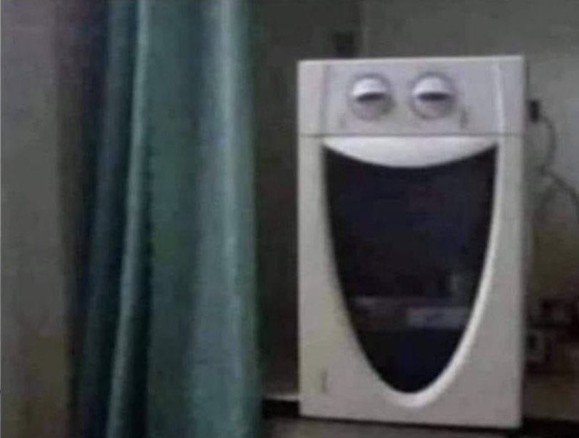 調節ボタン(温度、時間など)が“目”に見え、内部を確認する黒いところが“口”に見えます。