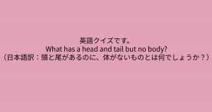 (日本語訳:頭と尾があるのに、体がないものとは何でしょうか?)