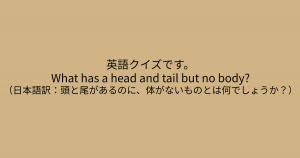 コイントスをした時の表裏のことを、英語では「head(頭)」「tale(尾)」と言います。つまり、コインには、頭と尻尾があっても体がないのです。