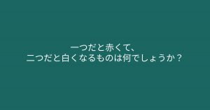 ”一つだと赤くて、二つだと白くなるものは何でしょうか?” よーく考えて解いてみましょう! 今回ご紹介するのは脳トレクイズです。 問題 一つだと赤くて、二つだと白くなるものは何でしょうか? Google ADVERTISEMENT Google あなたはわかりましたか? それでは答え合わせに行きましょう! Google 答えは、、、「ち」 ADVERTISEMENT 一つだと「血(ち)」なので赤いですが、二つになると「乳(ちち)」となり、白くなります。 Google あなたは間違えずに解けたでしょうか! ADVERTISEMENT Google [著作権者VONVON /無断コピー、無断転載および再配布禁止(違反時の法的措置)