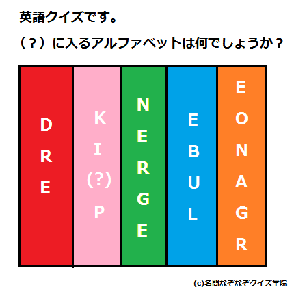 KI(?)Pをピンクを表す英単語である「PINK」にするには、「N」というアルファベットが必要ですので、これが答えになります。