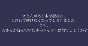 「Aさんが読んでいた本のジャンルは何でしょうか?」 頭が柔軟な人には簡単すぎる問題! 今回ご紹介するのは脳トレクイズです。 問題 : Aさんがある本を読むと、しびれて動けなくなってしまいました。 さて、Aさんが読んでいた本のジャンルは何でしょうか? Google ADVERTISEMENT Google あなたはわかりましたか? それでは答え合わせに行きましょう! Google 答えは、、、「伝記(電気)」 ADVERTISEMENT 「伝記」を読むと、伝記だけに「電気」が走ってしびれてしまいました。 Google あなたは間違えずに解けたでしょうか! ADVERTISEMENT Google [著作権者VONVON /無断コピー、無断転載および再配布禁止(違反時の法的措置)