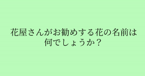 「花屋さんがお勧めする花の名前は何でしょうか?」 男性陣には少し難しい問題かも? 今回ご紹介するのは脳トレクイズです。 問題 :花屋さんがお勧めする花の名前は何でしょうか? Google ADVERTISEMENT Google あなたはわかりましたか? それでは答え合わせに行きましょう! Google 答えは、、、「水仙(推薦)」 ADVERTISEMENT 「お勧め」を別の言葉で言い換えると「推薦すいせん」になります。推薦だけに「水仙(推薦)」を勧めました。 ADVERTISEMENT Google あなたは間違えずに解けたでしょうか! Google [著作権者VONVON /無断コピー、無断転載および再配布禁止(違反時の法的措置) ADVERTISEMENT