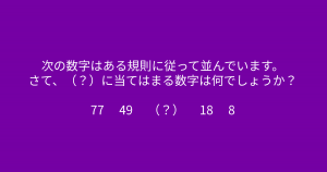 77の場合、 7×7=49よって、(?)に入る数字は、4×9=36より、「36」が答えになります。