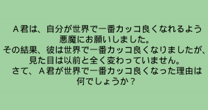 A君は、自分が世界で一番カッコ良くなれるよう悪魔にお願いしました。