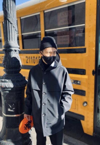 1枚目はカフェでのショット。帽子から靴まで全身ブラックコーデで、サングラスをかけ、ニューヨーカーの雰囲気を漂わせていますね。2枚目は、フリスビーを手に、バスの前でポーズ。3枚目は投稿に「Going to the park」とあるよう、公園の入り口に向かっている姿を公開しました。
