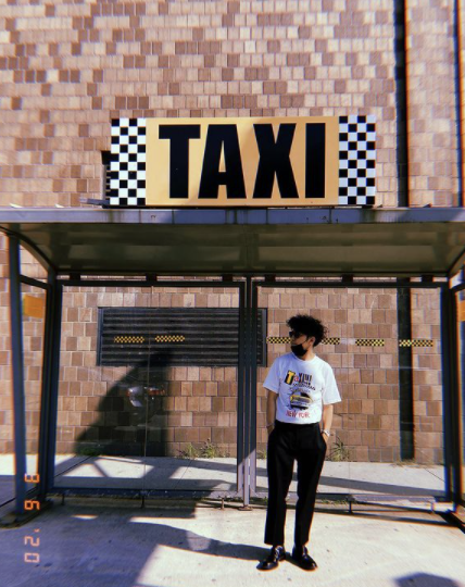 今回の投稿には、「Going to the park」(公園に行く)とつづり、ニューヨークの街並みを背景にし、目線を外しながらかっこよく決めているショットを3枚アップ。