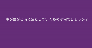 ”車が曲がる時に落としていくものは、、、”難しく考えたら答えられない問題 今回ご紹介するのは脳トレクイズです。 問題 車が曲がる時に落としていくものは何でしょうか? google ADVERTISEMENT Google あなたはわかりましたか? それでは答え合わせに行きましょう! Google 答えは、、、「スピード」 ADVERTISEMENT 車は曲がる時に、「スピード」を落として安全を確保します。 Google あなたは間違えずに解けたでしょうか! ADVERTISEMENT Google [著作権者VONVON /無断コピー、無断転載および再配布禁止(違反時の法的措置)