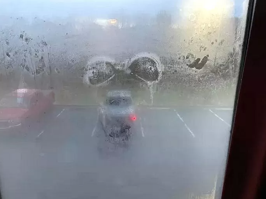 彼女が公開した写真を見ると、窓に残る女性の胸とお腹のような跡が確認できます。