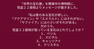 「世界の宝石展」を開催中の博物館に、怪盗22面相よりメッセージが届きました。