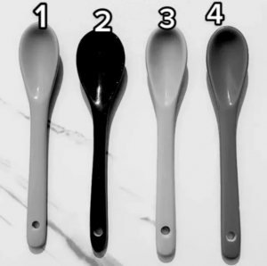白黒写真だけを見て4番目のスプーンを赤色で選んだら、色味を区別する能力が優れた色味能力者です。