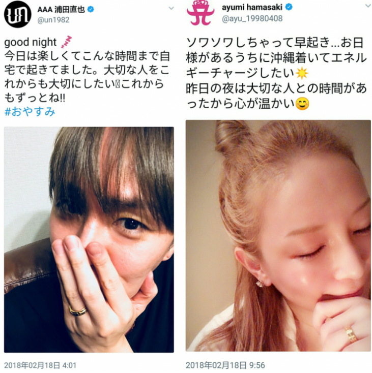 ある時からSNS上で両者の交際匂わせ行為が多発。浦田さんのツイッターに投稿されたのは、左手の薬指にゴールドのリングをはめた自撮り写真と「今日は楽しくてこんな時間まで自宅で起きてました」「大切な人をこれからも大切にしたい」といった意味深な文章。また、浜崎さんも次の日、インスタグラムを更新し、同じものに見えるゴールドのリングを左薬指に付けた自撮り写真を公開。「昨日の夜は大切な人との時間があったから心が温かい」と意味深な言葉をつづっていたり…