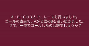 ゴールの直前で、Aが2位のBを追い抜きました。