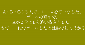ゴールの直前で、Aが2位のBを追い抜きました。