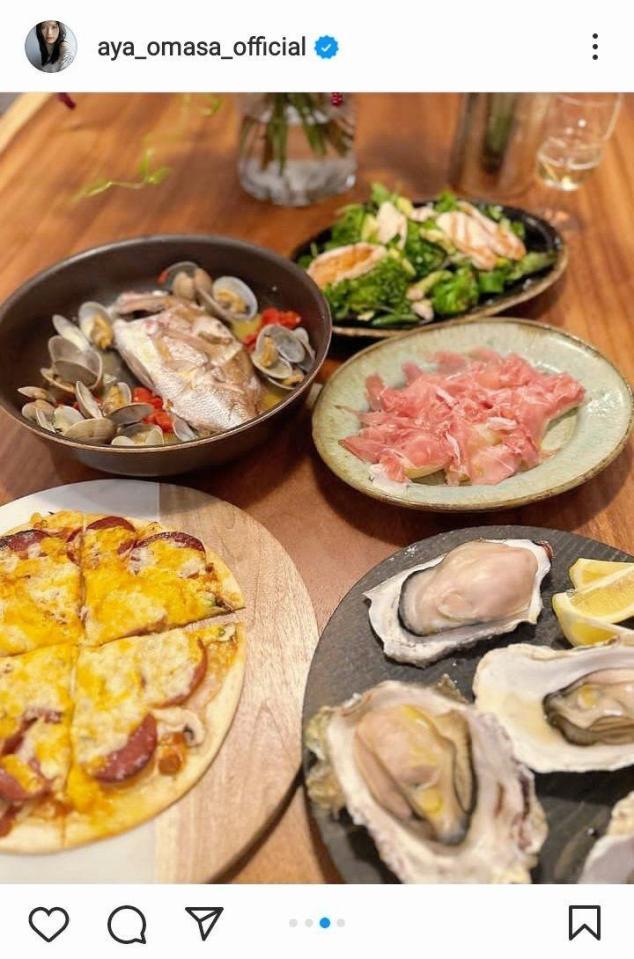 「#絢ご飯」のハッシュタグとともに、手料理の写真をアップしたのですが「北海道根室産のとっても大きい牡蠣が届きたくさん剥き、たくさん食べた日 牡蠣に興奮し、他のメニューを作りすぎてしまいました…。ホワイトアスパラやサラダ、ピザ」と、牡蠣をはじめ、色鮮やかなサラダやアクアパッツァ、ピザなどが並ぶ豪華な食卓を披露しました。