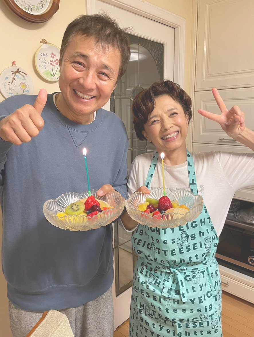 渡辺さんは今月13日に自身のアメブロを更新しました。12日が誕生日だった渡辺さんを妻の榊原さんが一番喜び、祝う姿を公開しました。