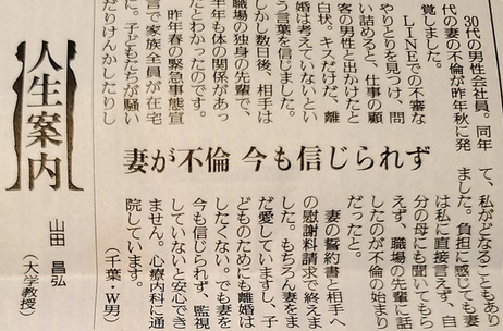 今日ご紹介する人生案内は妻の不倫に悩む男性会社員のお悩みです。お子さんにも恵まれ、幸せな家庭を築いているのかと思いきや妻の不倫はショックすぎますね。一体どんな話が待っているのでしょうか。詳しく見ていきましょう。