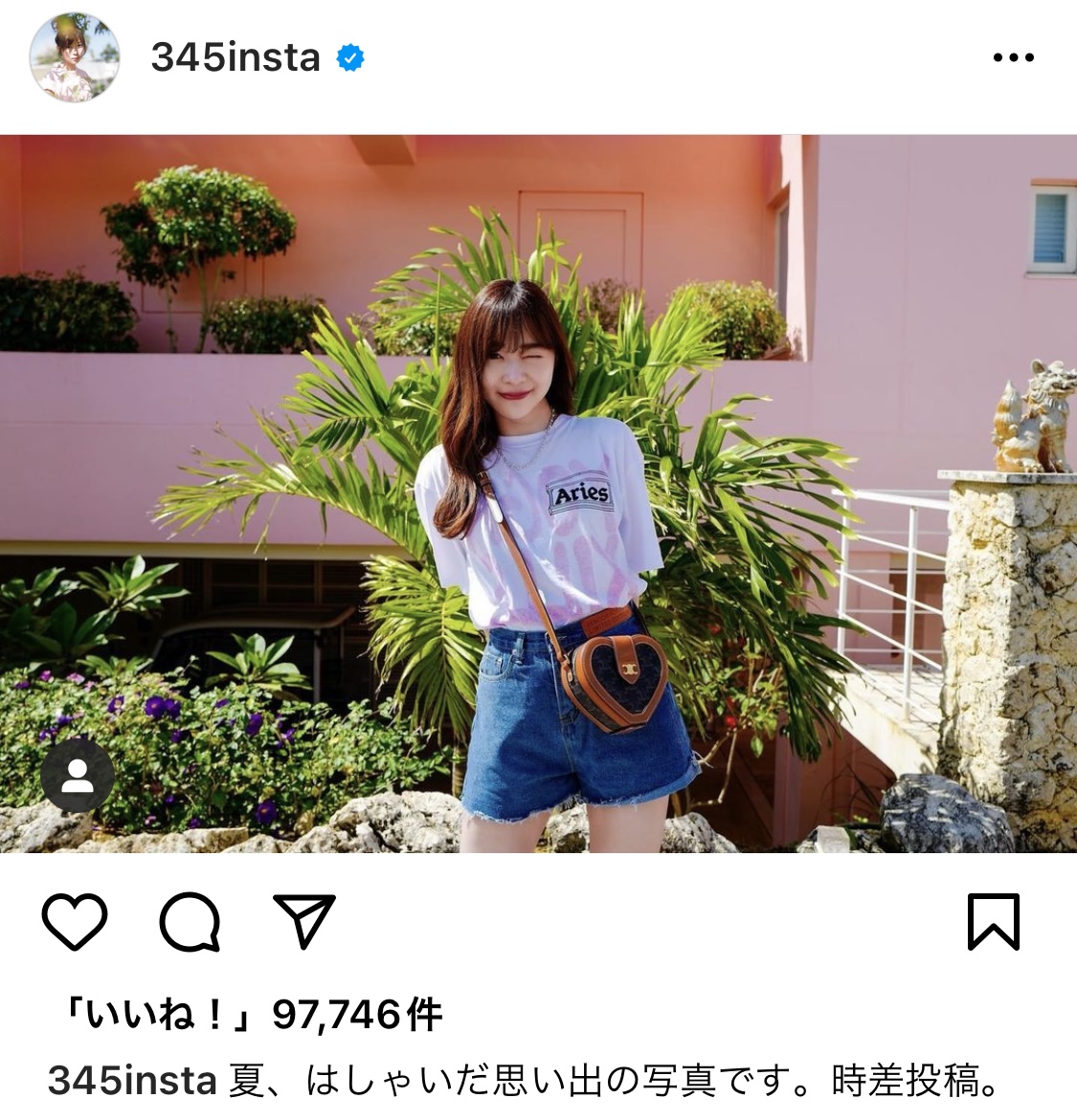 投稿した内容は「夏、はしゃいだ思い出の写真です」というコメントと共に、 太ももを大胆に露出したショートパンツコーデでウインクする姿が見受けられます。
