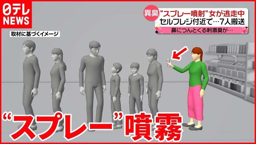 赤羽容疑者は、23日午後7時17分頃、商業施設内で面識のない家族にスプレーをかけ傷害を負わせた疑い。家族の母親は喉などの熱傷で約2週間の怪我をおっています。女は逮捕時の取り調べで「スプレーをかけたことは間違いないが、けがを負わせたことは分かりません」と容疑を一部否認していました。
