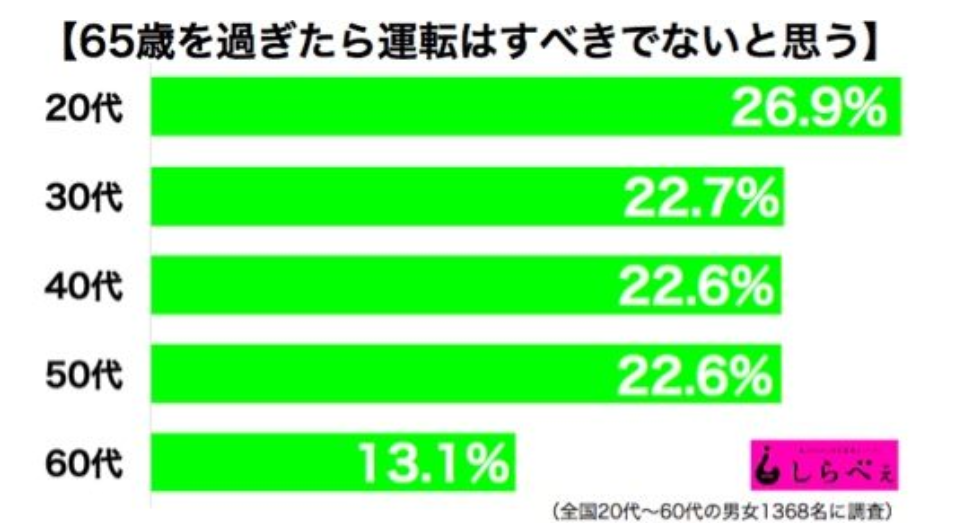 調査の結果、およそ2割の人が、「65歳を過ぎたら運転はすべきではない」と回答したことが分かりました。