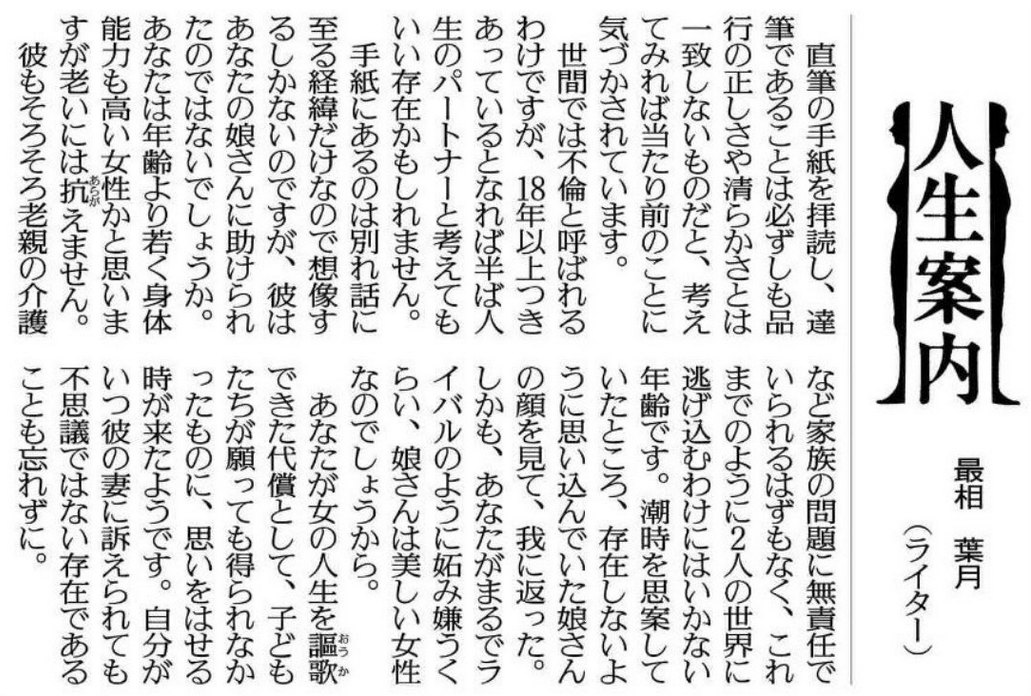 この投稿にアドバイザーとして回答するのはライターの最相葉月氏です。