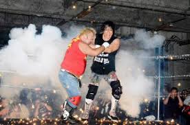 今年10月にはプロレス界のレジェンド・大仁田厚とも対戦し、有刺鉄線電流爆破バットで殴られ、さらに電流爆破で火だるまにされるなど、かなり本格的なプロレス対戦をしています。