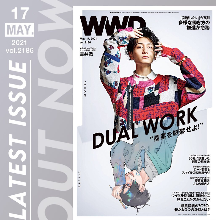 自身初の表紙登場となった「WWDJAPAN」5月17日号では、添さんの写真と、添さんが描き下ろした絵を合わせて、モデルとアーティスト、2つの顔を披露。