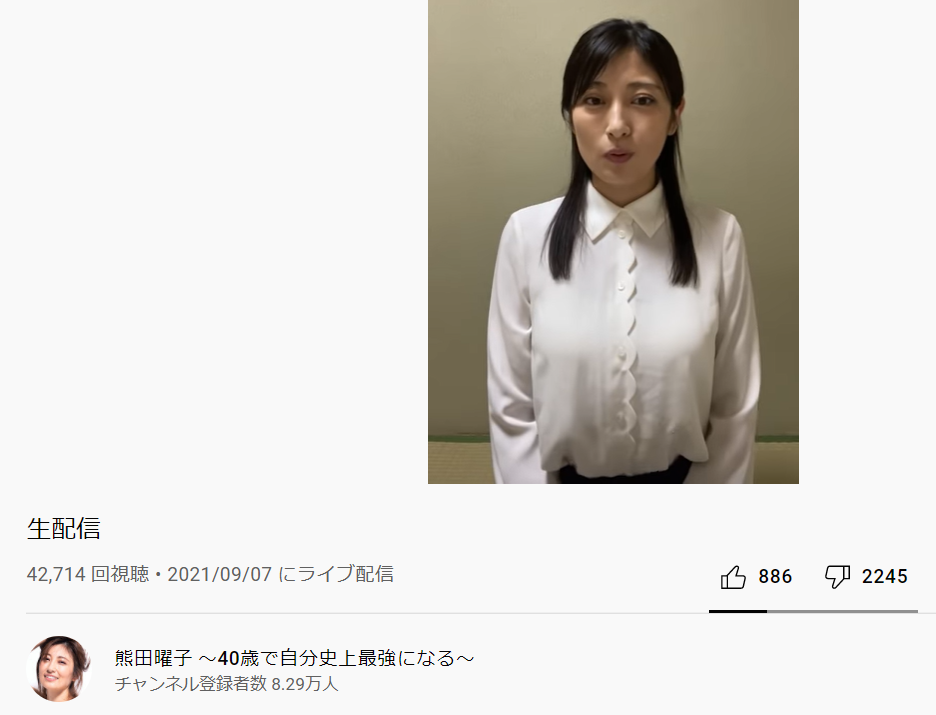 タレントの熊田曜子さんといえば離婚騒動で世間を騒がせていますが、7日にYouTubeで“謝罪配信”を行いました。その動画はアーカイブとして残っているのですが、どこか不自然なんだとか…。どのような状況になっているのか詳しく見ていきましょう。