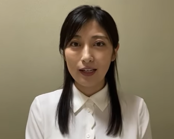 黒い髪に白色のブラウスを着た熊田さん。元気が無いような印象です。