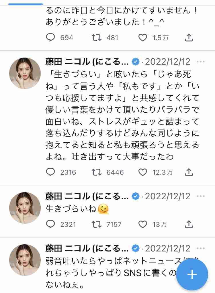 これに慌てた藤田は東谷に直接連絡をしてきたそうです。話の内容は、「私のやったことは最低だった。ごめんなさい東さん。私は東さんがいたから初めて友達ができて、みんなと遊ぶようになったから本当に感謝してる」と藤田から謝罪があったようです。そのため東谷は、「友達としてニコルは許します」と発言し、藤田の暴露はしないと決めていました。今後は、過去に藤田と遊んだ時のおもしろ話などを語っていくようです。