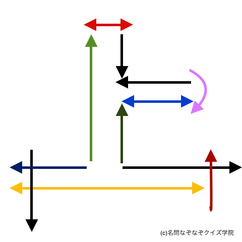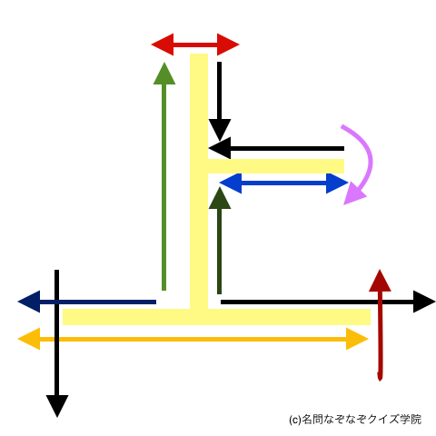 あらゆる方向を矢印が指し示しており、一見しただけではどこに向かうべきかわかりません。そこで、地図の矢印をよく見てみると、矢印全体で「上」と言う漢字を作っていることがわかります。よって、「6、ハシゴで上へ」が答えになります。