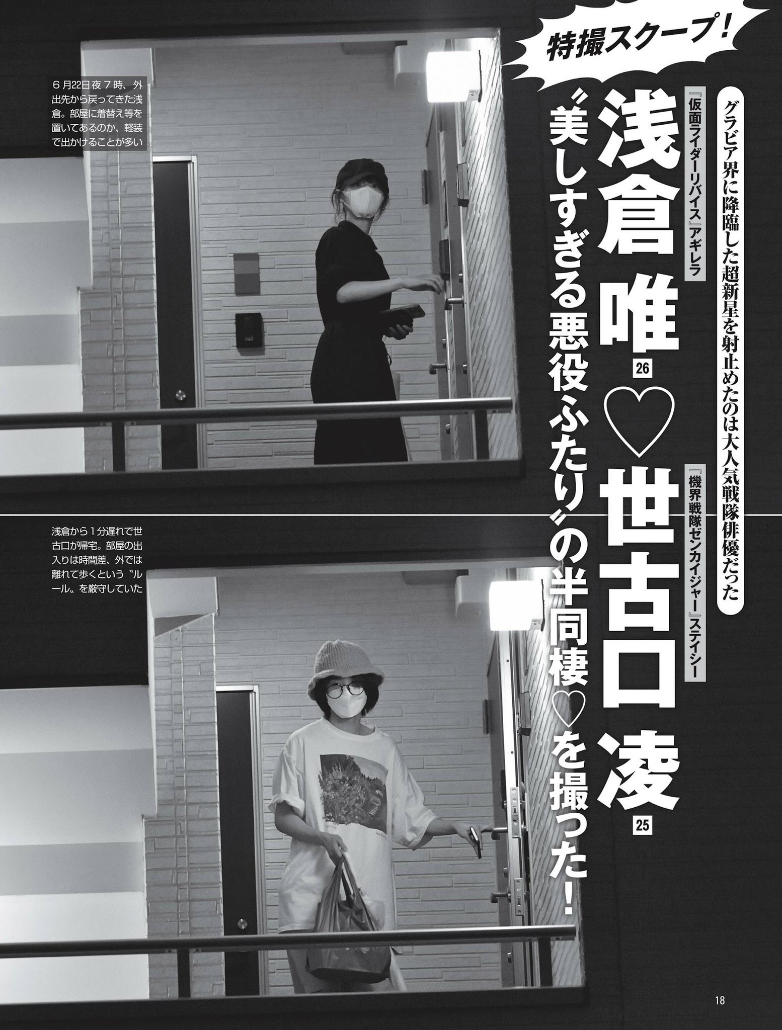 浅倉は、世古口のワンルームマンションに週3回以上通っており、半同棲状態にあるとのことで、彼女は現在放送中の特撮ドラマ『仮面ライダーリバイス』で、悪の女王役として出演しています。また、世古口も過去に『機界戦隊ゼンカイジャー』で悪のヒーローを演じており、美男美女のカップルとして話題になっています。