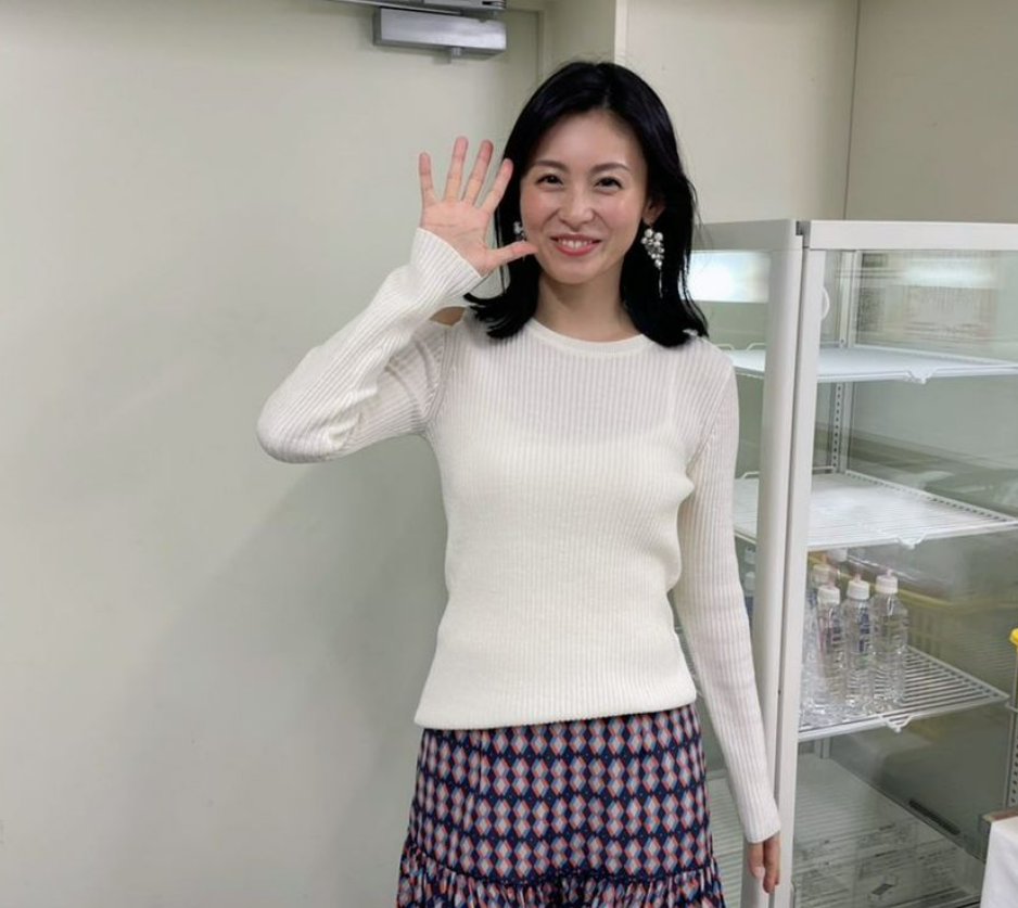 写真は同日に行われた年越しカウントダウンイベントに出演した時に撮ったものであり、柄物のスカートに白の長袖ニットというスタイルでした。本仮屋さんは袖がてのひらにまでかかった右手を上げて手を振るようなポーズをして、満面の笑顔を見せています。