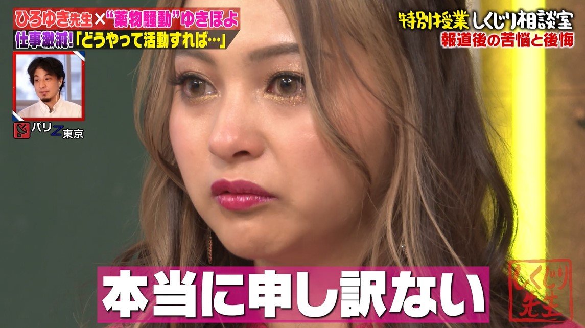 今月18日、『しくじり先生 俺みたいになるな!!』にタレントのゆきぽよさんが登場し、以前報道された薬〇騒動に言及し、涙ながらに思いを語ったのでした。