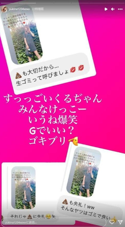 続いてまさかの「アンチと誹謗中傷するやつ銀杏ぢゃんっておもってたけど銀杏に失礼だから(大便の絵文字)って呼んでる」とまさかの発言に対してこの投稿に対してファンのメッセージがきたようで