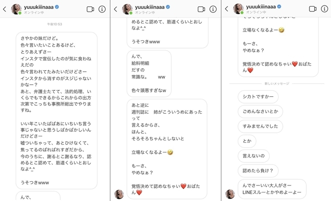 木下優樹菜が11月18日に、所属事務所であるプラチナムプロダクションを通じ、活動自粛を発表しました。かつて実姉が勤務していたタピオカ店の経営者に対し、恐喝まがいのDMを送っていたとし、10月9日にはinstagramを通じ謝罪、今回改めて「自らの言動を深く反省し、当面の間、芸能活動を自粛させていただくことといたしました」と報告しています。