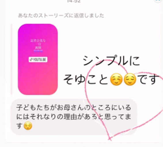 また娘たちの親権は母親である、木下優樹菜さんにあるとしていますがこのことに対してファンは「子どもたちがお母さんのところにいるにはそれなりの理由があると思ってます」というDMを送っており