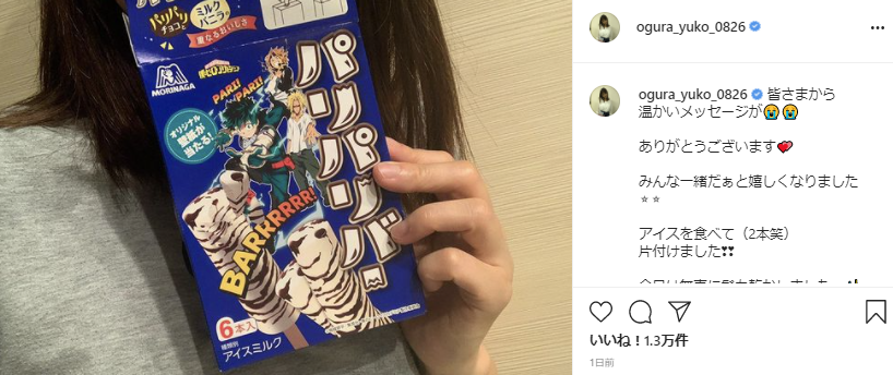 この反響を見た小倉さんは、再びInstagramを更新し、アイスの箱を持った姿の写真をアップロード、「皆さまから温かいメッセージが ありがとうございます みんな一緒だぁと嬉しくなりました アイスを食べて(2本笑)片付けました 今日は無事に髪も乾かしました」と、無事に片づけが終わったことを報告し、「寝坊した日も朝起きたくない日も色々ありますが明日も頑張りましょう」とファンたちに呼びかけていました。