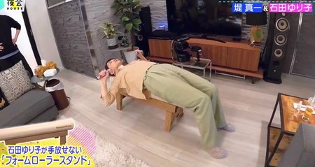 「番組で石田は、ふだん愛用しているというストレッチ器具・ローラースタンドを紹介しました。その際、彼女は立ったままローラーに手を置き、中腰状態で出演者たちと会話をすることに。すると、カメラは石田の背後を捉えていたことで、タイトなズボン越しのヒップが突き出される形となっていたのです。これには視聴者から、『ゆり子さん、めちゃくちゃ美しいヒップしてる!』『ヒップの割れ目がクッキリでたまらない』『お顔もボディも最高の艶っぽさだ』と絶賛の声が相次ぎました」