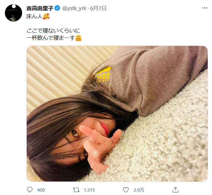 先日、ツイッターで自宅と思われる床に寝そべる自撮り写真を投稿したのですが